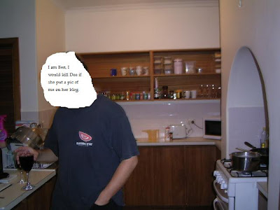 I cannot believe that I forgot to take "before" photos. You'll just have to take my word for it. The laundry was a dark, dingy cupboard with a horrible old stainless steel sink that was so grotty I never even touched it. The bathroom had orange floor tiles and NO cupboards whatsoever. The kitchen.. well, I did manage to find a sort-of pic of that.
